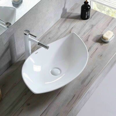 Vòi Lavabo Nóng Lạnh Trắng Sứ Cao 30cm